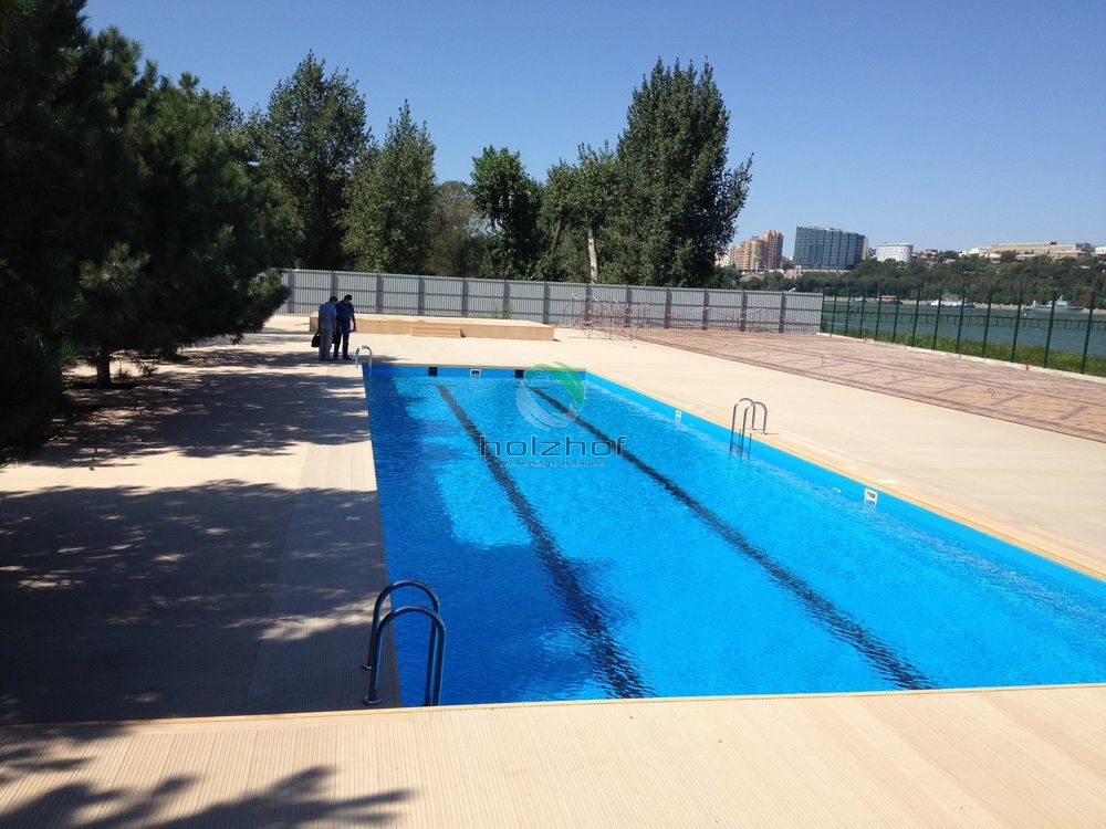 Выполнены работы по монтажу декинга из ДПК в г. Ростове-на-Дону. Общий объем работ составил более 1500 кв.м. Все работы выполнены бригадой наших монтажников. Интересным моментом в данном проекте было изготовление нескольких видов оснований для подконструкции. Тут применялись и винтовые сваи и регулируемые опоры и бетонная стяжка.