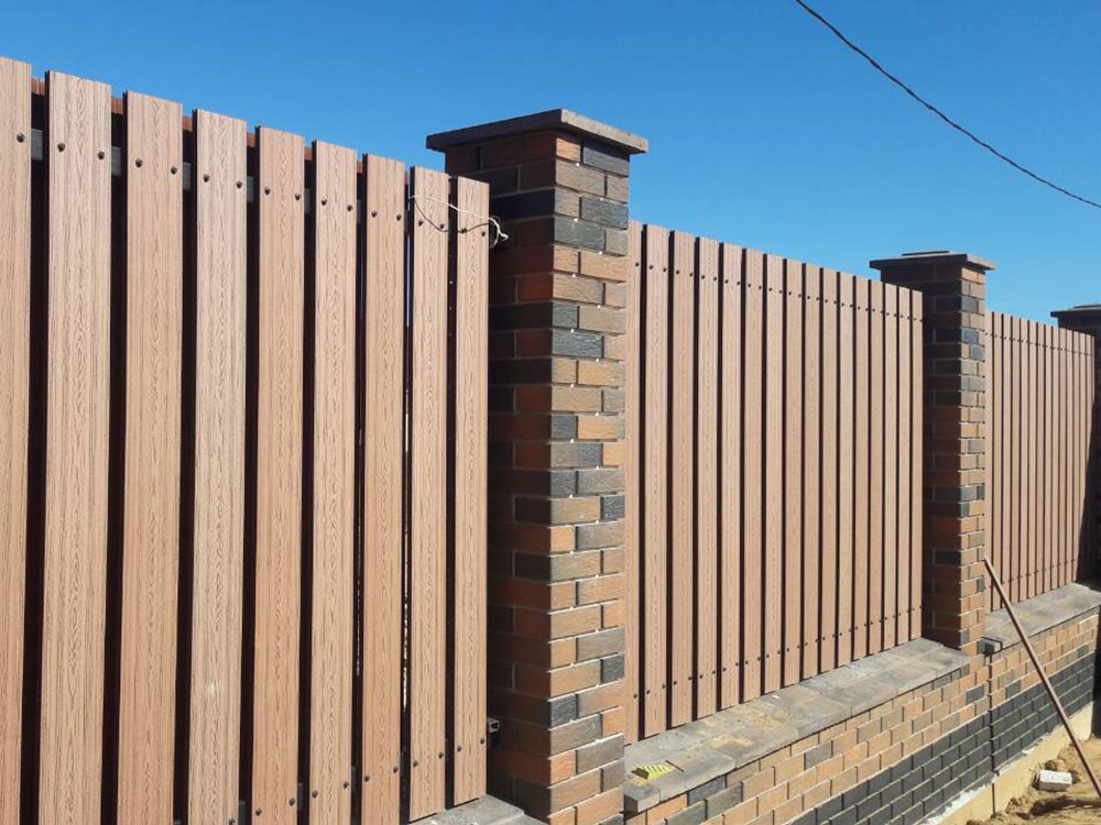 Вертикальный (вентилируемый) забор из террасной доски HOLZHOF универсальная. Подходит как для напольного покрытия, так и для заборных ограждений, за счет своих универсальных особенностей.
